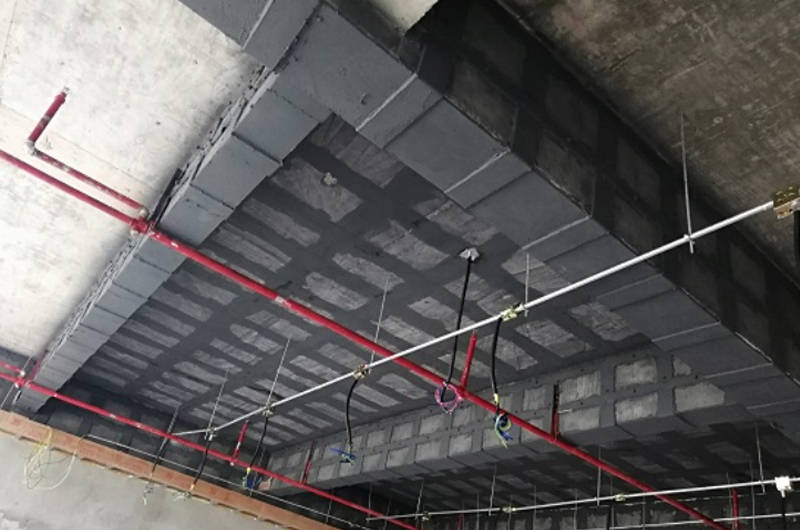 当被加固构件的表面有防火要求时,应按现行我国《建筑设计防火规范》GB50016规定的耐火等级及耐火极限要求,对胶粘剂和钢板进行防护。